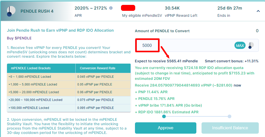 If you convert 5000 PENDLE, you would get 5565 mPENDLE