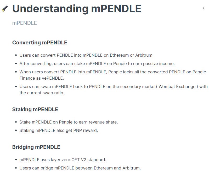 mPENDLE also uses the OFT standard by LayerZero, which means it can be bridged between ARB, BNB, and ETH networks.